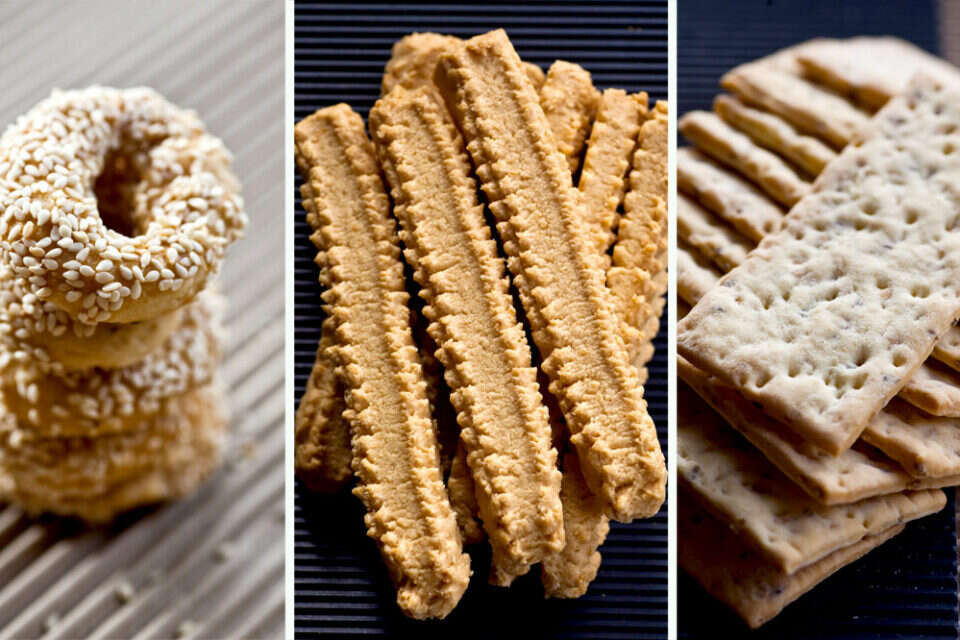 צילום: איתיאל ציון // מימין לשמאל: עוגיות אניס ותפוזים, עוגיות מכונה וכעכים