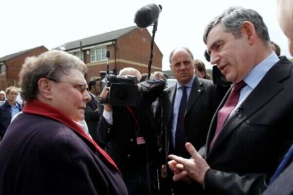 שבוע לפני הבחירות נקלט גורדון בראון מכנה גמלאית שעימה שוחח "צרת אופקים"