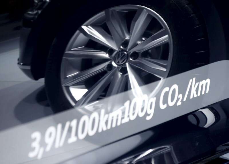 מציגים את נתוני הזיהום בתערוכת רכב בפרנקפורט // צילום: רויטרס