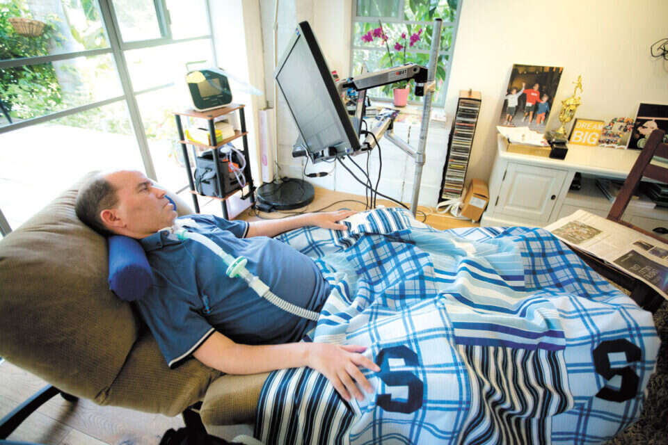 בשנה האחרונה, אחרי שאושפז שלוש פעמים בשל דלקת ריאות, הוא חובר למכונת הנשמה פולשנית. "זה פחות מפחיד, כי לפני זה הייתי כל הזמן נחנק. עכשיו לא. אבל התחזוקה יותר מורכבת. כדי לצאת מהבית צריך לסחוב איתך חצי חדר ניתוח.