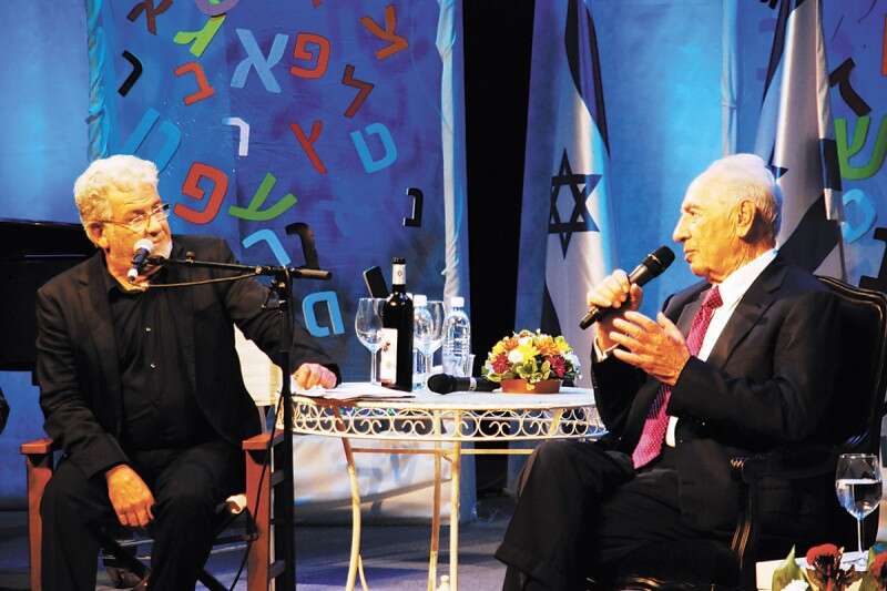 סיפורים. שמעון פרס ויוסי אלפי בפסטיבל מספרי סיפורים // צילום: באדיבות תיאטרון העם