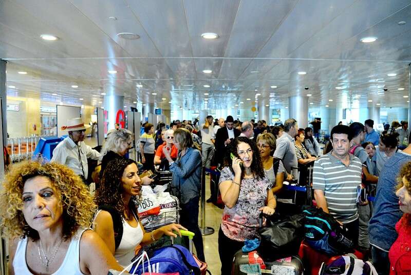 תורי ענק בנתב"ג, אתמול // צילום: יוסי זליגר