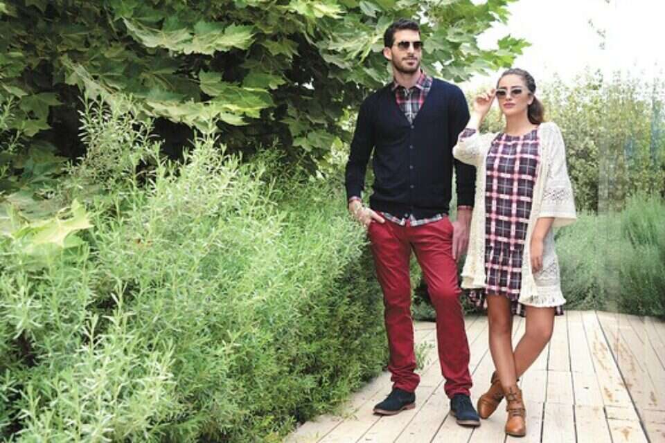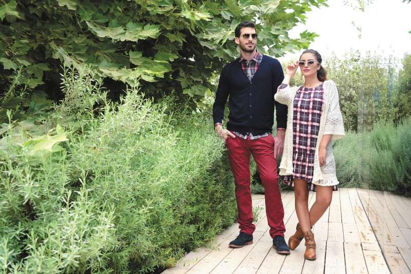 אליה: שמלה, קדס, 149.90 שקלים | חולצה, אמריקן איגל, 199.90 שקלים | מגפונים, סקופ, 350 שקלים | עגילים, טופ טן, 29.90 שקלים. אייל: חולצה, קסטרו, 229 שקלים | ג'ינס, סליו, 329.90 שקלים | נעליים, לה קוק ספורטיף, 559 שקלים // צילום: מאיה באומל