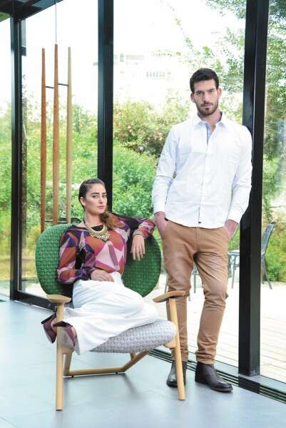 אליה: חולצה, אפרתה, 249 שקלים | מכנסיים, הוניגמן, 259.90 שקלים | נעליים, קלארקס, 499.90 שקלים | שרשרת, מנגו, 149.90 שקלים. אייל: חולצה, זיפ, 199 שקלים | מכנסיים, בלו בירד, 269.90 שקלים | נעליים, פרימוד ברשת גלי, 419.90 שקלים // צילום: מאיה באומל בירגר