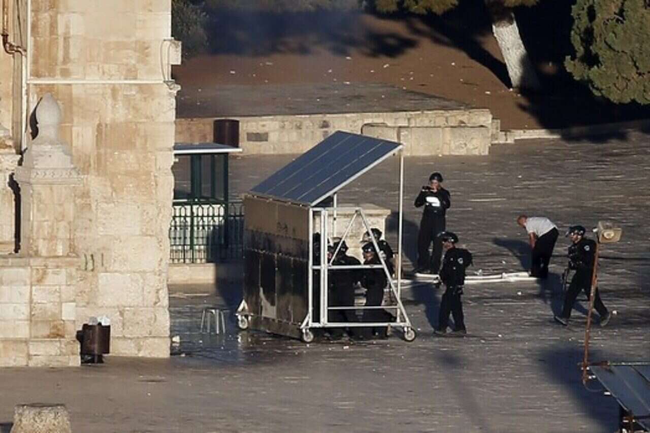 בעקבות זאת, נכנסו כוחות המשטרה לרחבת שער המוגרבים והדפו את המתפרעים, תוך שימוש באמצעים לפיזור הפגנות, לתוך המסגד. במסגרת זו עשתה המשטרה שימוש בכלי חדש: מתקן נייד שגובהו ורוחבו הותאמו במיוחד לכניסה למסגד אל־אקצא ואשר נועד למנוע את יידויי האבנים, בקבוקי התבערה ואמצעים נוספים מתוך המסגד החוצה, לעבר כוחות המשטרה.