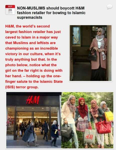 רשת הביגוד H&M שכרה את הדוגמנית המוסלמית מריה אידריסי, שעוטה את כיסוי החיג'אב המסורתי בתמונות בהן היא מופיעה. הקמפיין החדש מעורר תגובות תומכות מצד אחד, אך מצד שני גם תגובות הקוראות להחרים את הרשת ש"כורעת ברך אל מול שלטון האיסלאם".