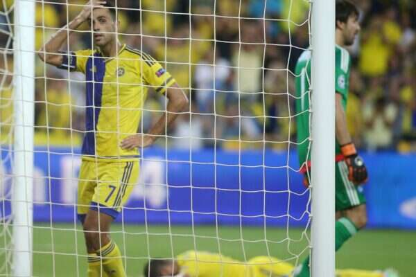 דקה 7: אבי ריקן מצא את ערן זהבי שהצליח להכניע את האוקראינים אך הכוון הניף עוד קודם דגל לנבדל.