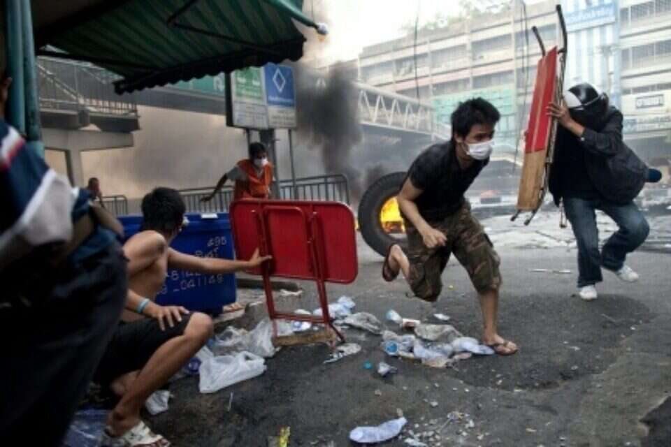 המאבק בין השלטון התאילנדי למתנגדיו - בין הצהובים לאדומים - הפך למהומות קשות, שאחדים הגדירו כ"נרחבות והאלימות ביותר" שידעה תאילנד אי פעם. ביום רביעי הצליח הצבא לפרוץ למתחם המרכזי של ראשי המפגינים בבנגקוק, ולהכניע אותם. אולם נראה שזו היתה רק יריית הפתיחה להסלמת המהומות. המוני מפגינים, שסירבו לקבל את כניעת ראשיהם, הבעירו את העיר.