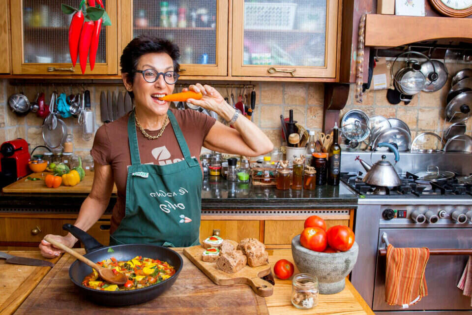 "יש לי תשוקה מטורפת להראות שבישול בריא אינו הרבה יותר מסובך מבישול רגיל, ואינו פחות טעים ממנו", היא אומרת לי כשאנחנו לוגמות קפה הפוך עם חלב שקדים (שהכינה במו ידיה כששמעה שאני רגישה ללקטוז) וזוללות עוגת תפוחים ותמרים טבעונית טעימה להפליא. "כשאנשים מקבלים מרופא, מתזונאית או מנטורופתית הנחיות לשינוי תזונה בשל בעיות סוכרת, שומנים בדם, בעיות לב ועוד, הם חוזרים הביתה בדיכאון נוכח הרשימה של המזונות המומלצים והאסורים. הם לא יודעים מה לעשות עם זה. מה זה חלבון מהצומח? מה זה סיבים תזונתיים? אגב, אני לא מאמינה בגישות קיצוניות, בהימנעות ממתוקים, מפחמימות או מבשר, ולמרות שרבים מהמתכונים שלי הם טבעוניים, יש בהחלט גם מתכונים של בשר למי שאוהב ורוצה".