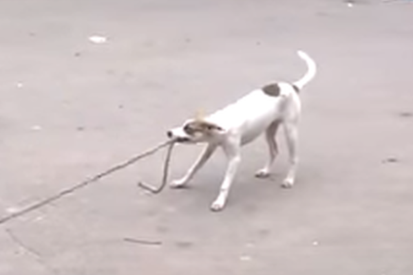 הכלבה החביבה מסתובבת בריו דה ז'נרו כבר כמה זמן, והילדים, שכנראה כבר פיתחו איתה קשרי ידידות, פשוט ניסו לתת צד אחד של החבל, והופ - זה עבד. הם מצאו שותפה חדשה לקפיצה בחבל.