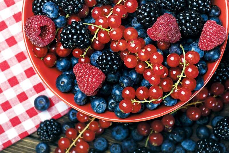 דוגמת פירות יער ורימונים. מכילים אנתוציאנינים (נוגדי חמצון) וכן אנטיציאנין, שיעיל לעיכוב סיבוכי סוכרת ולמניעת סרטן וטרשת עורקים.