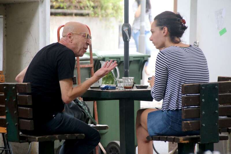 רמי פורטיס בשיחה עם נגנית הצ'לו נעה אילי // צילום: ניר פקין