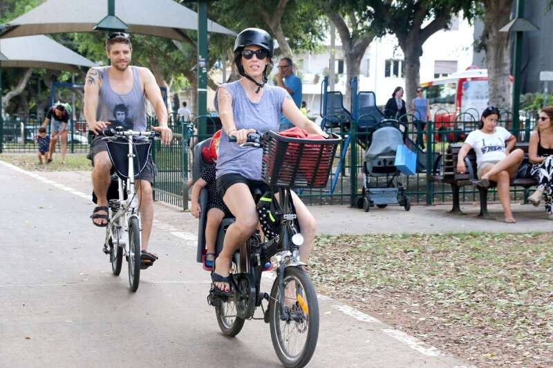 איגי וקסמן ההריונית, עתי שולברג נטול הקסדה ולילי הקטנה מפגינים משפחתיות // צילום: ניר פקין