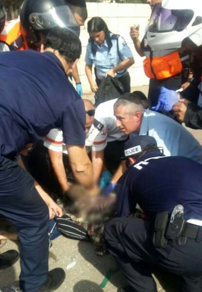 הטיפול במחבלת בזירת הפיגוע (צילום: דוברות מד"א)