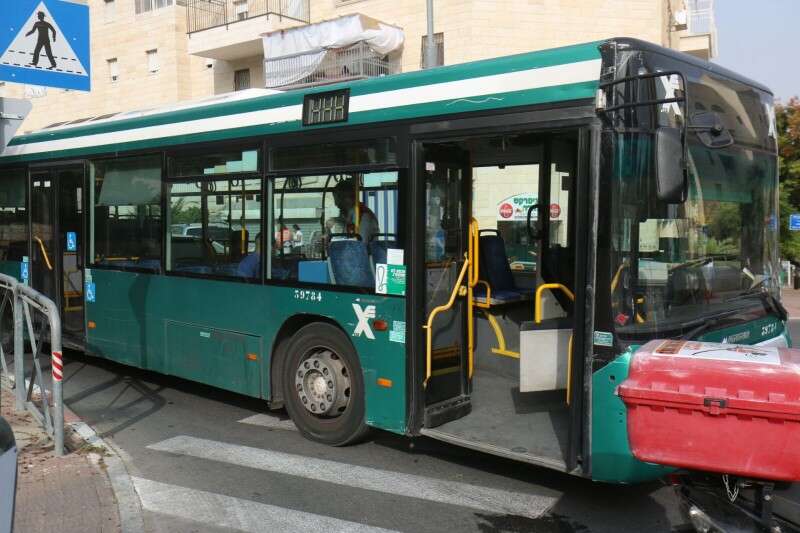 האוטובוס שבו נדקר הצעיר בן ה-25 שנפצע קשה (צילום: הלל מאיר - TPS)