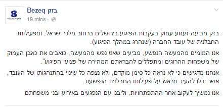 בזק אישרה כי המפגע אביצע את פיגוע הדריסה והדקירה ברחוב מלכי ישראל שבירושלים הוא עובד החברה. בתגובה לאירוע הקשה הביעה החברה זעזוע עמוק מפעילותו החבלנית של עובד החברה, שנהרג במהלך הפיגוע.