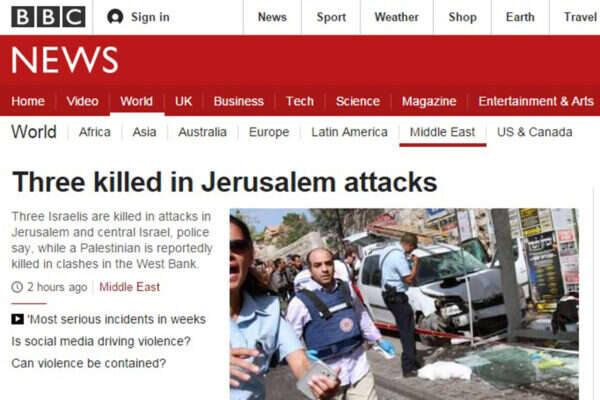 אפילו רשת BBC איזנה את הכותרות שלה, אחרי שספגה ביקורת על הניסוח הקלוקל והמוטה במובהק נגד ישראל בשבוע שעבר. הכותרת אמנם היתה מעורפלת מעט עם "שלושה נהרגו במתקפות בירושלים", אך כותרת המשנה מבהירה כי ההרוגים הם ישראלים. הכותרת באתר ה"אינדיפנדנט" הבריטי היתה: "הדקירה באוטובוס בירושלים: שני ישראלים נהרגו והתוקף הפלשתיני 'נוטרל' לאחר מתקפה עם אקדח וסכין".