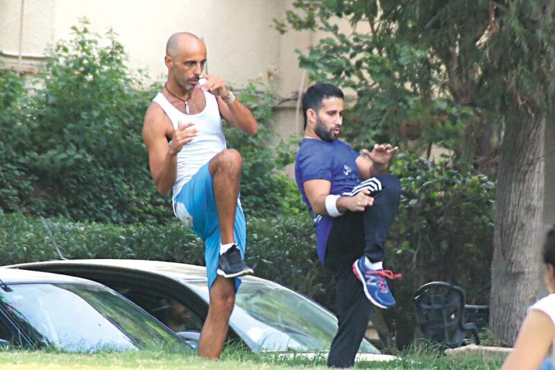 • ממש באותה שדרה, ביום שלמחרת, קלטנו את ליאור אשכנזי ואשתו מאיה מתרגלים רכיבה משותפת.