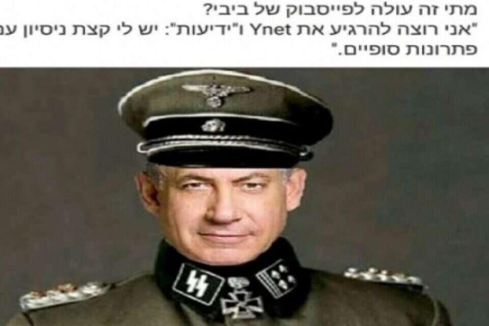 The Prime Minster's Office has asked for an investigation after an editor at Yedioth Ahronoth's online English portal, Ynetnews.com, uploaded a picture of Prime Minister Benjamin Netanyahu in Nazi uniform to his personal Facebook page. The post, which has since been taken down, was apparently aimed at mocking Netanyahu's comments from Tuesday in which he suggested that World War II-era grand mufti of Jerusalem, Nazi sympathizer Haj Amin al-Husseini, convinced Adolf Hitler to kill, rather than just expel, the Jews of Europe (Netanyahu later said his comments were misunderstood). Next to the picture, the editor wrote: "I wonder when Netanyahu will upload this picture to his Facebook profile and write: 'Yedioth and Ynet, rest assured, I have some experience with final solutions.'" The language of the post was a reference to a recent Facebook spat between Netanyahu and Ynet over a controversial photo showing Netanyahu observing the Gaza Strip with covered binoculars (the photo was shot before he could take off the lens caps). On Tuesday, Netanyahu attacked Yedioth Ahronoth for publishing the binoculars photo and wrote sarcastically on Facebook, "I want to reassure Ynet and Yedioth: I have some experience with binoculars." The swipe was accompanied by a black-and-white photo of Netanyahu from his time as an officer in the elite Sayeret Matkal commando unit. In the photo, a pair of binoculars is strapped to the young Netanyahu's chest. The editor's employers have summoned him for a disciplinary hearing upon which they will decide on his future. In response to the post, the Prime Minister's Office's legal adviser asked the State Attorney's Office to launch an incitement probe on the matter and the PMO's new media team has filed a complaint with Facebook and the Israel Police. Ynet declined to comment on the controversial post.