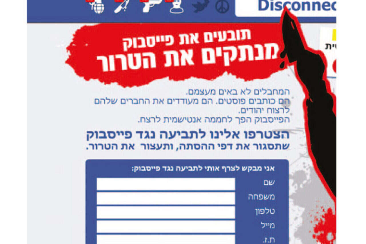 ארגון שורת הדין, העוסק במלחמה משפטית נגד הטרור, פתח בעקבות גל הטרור במהלך חסר תקדים והצליח לגייס בשבוע האחרון אלפי ישראלים תחת הכותרת: "תובעים את פייסבוק - מנתקים את הטרור". בארגון מצפים שבית המשפט בניו יורק יוציא צו מניעה כנגד פייסבוק, ויחייב את הרשת החברתית לקחת אחריות ולהביא לסגירת כל דפי ההסתה, תוך ניטור המסיתים וחסימתם. לטענת התובעים, מתקפת הפיגועים מהחודש האחרון מושפעת רבות מהמדיות החברתיות השונות, ובאופן מיוחד על ידי פרסומים של פלשתינים ברשת הפייסבוק.