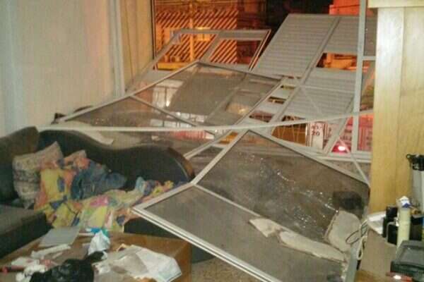 הטרור הפלילי מרים ראש. מטען חבלה התפוצץ היום לפנות בוקר בכניסה לבניין בחולון וגרם להרס גדול. בנס היו במקום שני נפגעים בלבד, במצב קל. במשטרת מרחב איילון הקימו צוות חקירה מיוחד לבדיקת נסיבות הפיצוץ.