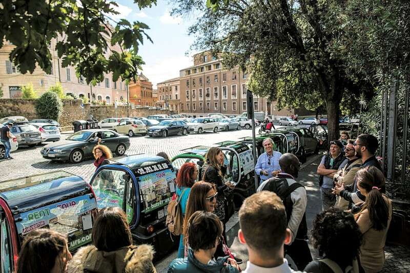 אחרי כינוס ב־Terrace of Palazzo Caffarelli, נקודת תצפית גבוהה שממנה נשקף נופה המרהיב של רומא, יצאנו לדרך, ישובים בתוך מכוניות חשמליות זעירות לשני אנשים, כשבידינו שורת מטרות שנקלטו ב"מפות גוגל". אם בהתחלה חששתי מהנהיגה (הרי כולנו יודעים איך הנהגים האיטלקים מתנהלים בכביש), עד מהרה הבנתי שברומא עלי לנהוג כרומאית - כשהרגל סוחטת את דוושת הגז (זה לא הרבה ברכב שמגיע עד 50 קמ"ש), עם הרבה חוצפה ותוך כדי התעלמות מוחלטת מרוב חוקי התנועה (כולל אין כניסה אחד שבו המתין שוטר, שהפריח לעברנו חיוך נוצץ והמשיך לקרוא עיתון).