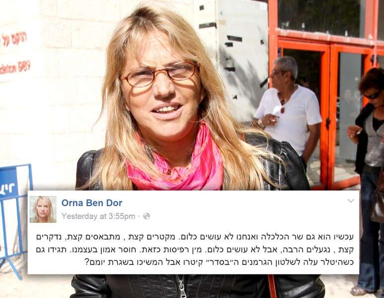 בן דור כתבה על ראש הממשלה כי "עכשיו הוא גם שר הכלכלה ואנחנו לא עושים כלום. מקטרים קצת, מתבאסים קצת, נדקרים קצת, נגעלים הרבה, אבל לא עושים כלום. מין רפיסות כזאת. חוסר אמון בעצמנו. תגידו, גם כשהיטלר עלה לשלטון הגרמנים ה'בסדר' קיטרו אבל המשיכו בשגרת יומם?".