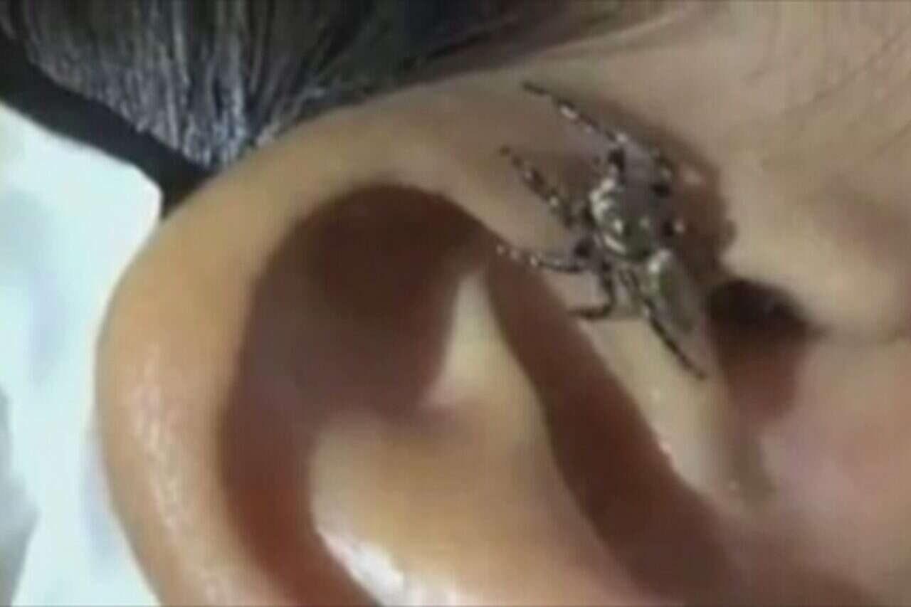בזמן שישנתם. עכביש חצוף במיוחד החליט להשתכן באוזנו של אדם בזמן שישן, לאחר שמצא בה כנראה, מקום מוגן וחם.