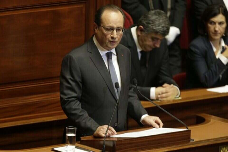 מאוחר יותר, נשיא צרפת פרנסואה הולנד עלה לדוכן הנואמים, ואמר כי "צרפת מצויה במלחמה, פעולות הטרור הן הכרזת מלחמה נגד מדינתנו, הנוער שלנו ואורח החיים שלנו", אמר בהתייחסו לכך שרוב ההרוגים והפצועים במועדון הבטקלאן היו צעירים, והמשיך "בתקופה קשה זו, ביקשתי לכנס את הקונגרס – הדמוקרטיה שלנו ניצחה אויבים קשים בהרבה, קשים יותר מהרוצחים השפלים הללו".