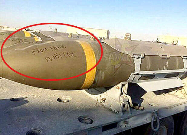 אחד המחזות המרגשים שתפסו את תשומת הלב הציבורית היה כיתובים "מפאריס, באהבה" שנכתבו על גבי פצצות וטילים אמריקניים אשר כוונו נגד יעדים של דאעש.