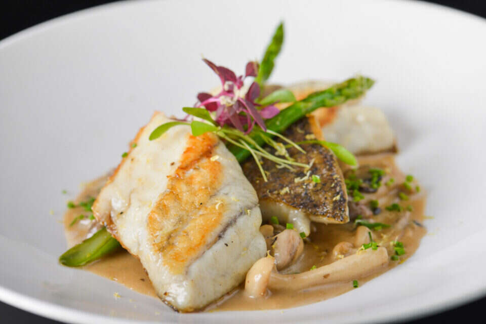 פילה ברמונדי עם פטריות ואספרגוס בחמאת שום ודאשי