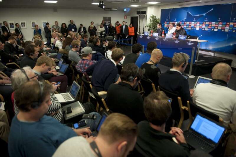 התקשורת השבדית במסיבת העיתונאים של זלאטן. ההתעניינות ניכרת // צילום: אי.פי.אי