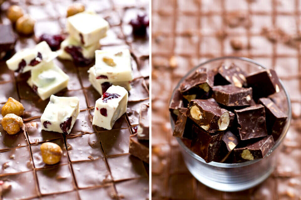 לפעמים, כשבא לנו משהו מתוק וקטן אנו מוותרים מכיוון שחפיסת שוקולד או חטיף שוקולד שלם מביאים איתם ייסורי מצפון. כמו בכל דבר, הסוד טמון במינונים, ולכן בחרתי לתת לכם שלושה מתכונים לחטיפי שוקולד קטנים שאפשר לחטוף פה ושם ולשמור על המסגרת הקלורית היומית. שימו לב - כל החטיפים ללא גלוטן עם מגוון תוספות של אגוזי עץ וטעמים נוספים. עם אגוזי העץ נמנים פיסטוקים, אגוזי פקאן, אגוזי מלך, שקדים, אגוזי מקדמיה, בוטנים, אגוזי ברזיל, אגוזי לוז, ערמונים, צנוברים וקשיו.