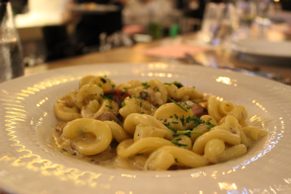 לעיקריות הזמנו פסטה רדיאטורי קרבונרה די אוקה וניוקי פילה עגל וערמונים. הראשונה, היתה מנת פסטה מופלאה, ברוטב שמנת עדין מנוקד בפלפל שחור גרוס, פטריות ונתחי אווז מעושן. כיף לאכול פסטה טרייה בחיפה, אם בתל אביב זה כבר מובן מאליו אז פה עדיין מותר להתרגש. גם הניוקי נעשה כהלכה והפילה היה מצוין אבל השילוב עם הערמונים והרוטב יצר מנה מעט מכבידה שכבר היה לנו קשה לסיים. אולי זה ירגיש אחרת עם גשם בחוץ.