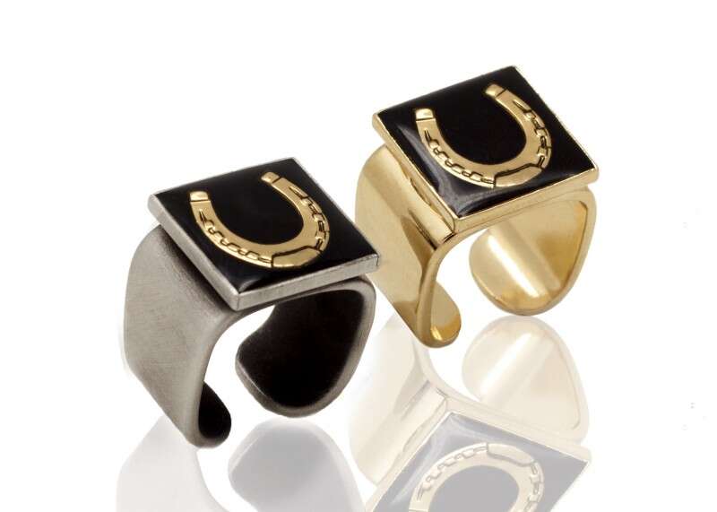 מיכל בן עמי טבעת לגבר עשוי פליז מצופה בזהב מבריק/ כסף גימור מוברש, עבודת יד בשילוב אמייל. 350 ש"ח לטבעת (צילום: חיה גולד)