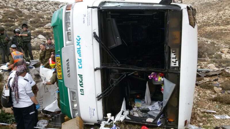 מנחם לף, ראש סניף בנימין של איחוד הצלה, דיווח מהזירה כי "מדובר באוטובוס שהתהפך לתעלה בצד הדרך. מרבית הנפגעים בהכרה מלאה ויצאו מהאוטובוס בכוחות עצמם. כמו כן ישנם מספר לכודים בתוך האוטובוס. בסיוע מתנדבים נוספים מיחידת האופנועים של איחוד הצלה אנחנו מעניקים טיפול רפואי ראשוני לנפגעים. צוותי כיבוי פועלים בזירה לחילוץ הלכודים".