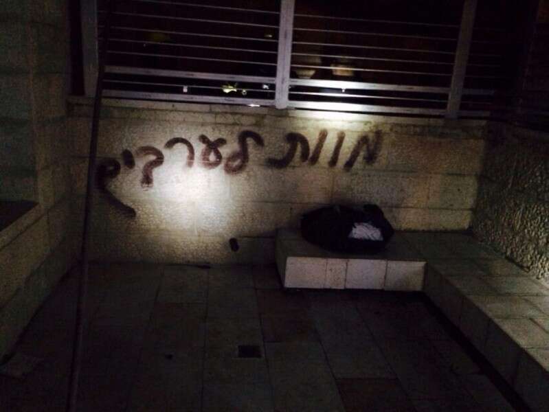 הכתובות שרוססו בליל ההצתה // צילום: שירותי הכבאות