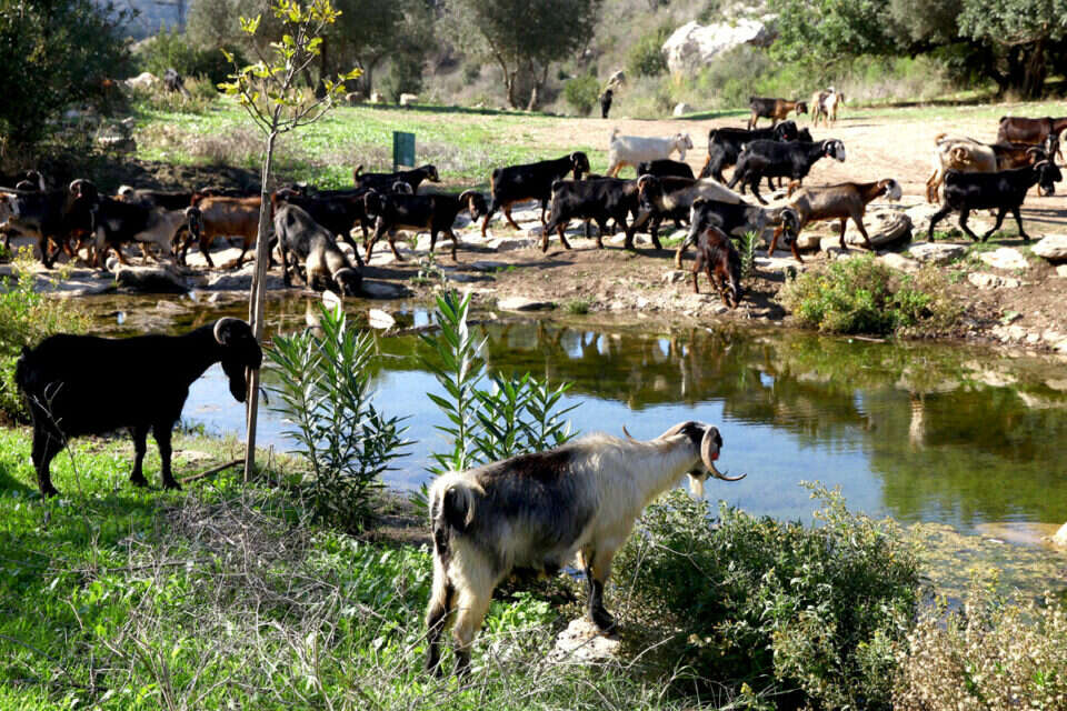 אנחנו ממשיכים עם השביל המסומן באדום לכיוון נחל אלון. לאחר הליכה לצידי הסלעים, אני מתרגשת למראה פריחתן של רקפות ראשונות וסמוקות, ואנו נתקלים בשרידי טחנת קמח עתיקה. מי שעוד לא התעייף יכול להמשיך עם השביל עד מעיין עין אלון, שלעיתים מלא במים ומשמש מקום מפגש לרועים ולעיזים מהכפר הסמוך, עוספיא.