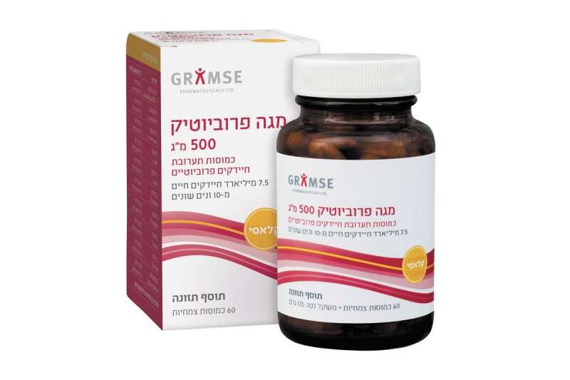 מגה פרוביוטיק - גרמזה • בכל כמוסה 7.5 מיליארד חיידקים פרוביוטיים מ־10 זנים שונים • 99 - 138 ש' ל־60 כמוסות