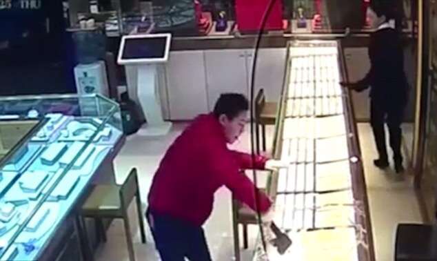 סין: המוכרים בחנות תכשיטים ידועה בעיר השאן שבדרום המדינה חשבו להעביר עוד יום עבודה שיגרתי ונינוח, עד ששודד חמוש בגרזן נכנס לחנות, שבר את חלון הראווה על הדלפק והחל לשדוד שרשראות זהב. בסרטון נראים המוכרות המבועתות נסות על נפשם.