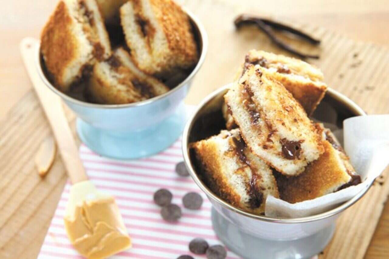 מכינים את הכריך: מורחים בממרח שאוהבים את כל פרוסות הלחם, על ארבע פרוסות מסדרים נטיפי שוקולד מכל מיני סוגים ומסדרים פרוסות בננה. מכסים בארבע הפרוסות הנותרות כשהממרח כלפי פנים ומהדקים היטב.