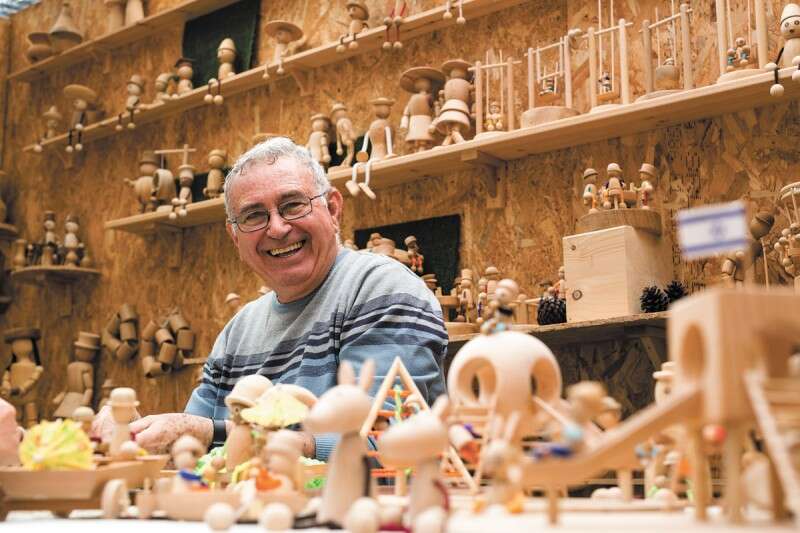 "ולמה בחרת לעבוד דווקא עם עץ?", אני שואלת. "אני מוציא חיוך מהעץ", הוא אומר. "צעצועי עץ הם נוסטלגיים בשבילי, ותמיד גם הוציאו חיוך ממני".