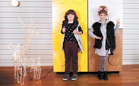 שירה: שמלה - הוניגמן קידס, 139.90 ש'; וסט דמוי פרווה - nununuworld.com, 445 ש'; תיק - TOUS, 860 ש'; גרביונים - זוהרה, 49 ש'; נעליים - סקופ, 124.90 ש'; קשת - פוקס קידס, 14.90 ש' ליאם: חולצה - הילדים של קסטרו, 59.90 ש'; מכנסיים - The Children's Place, 79.90 ש'; וסט - פוקס קידס, 129.90 ש'; נעליים - הילדים של קסטרו, 119.90 ש'