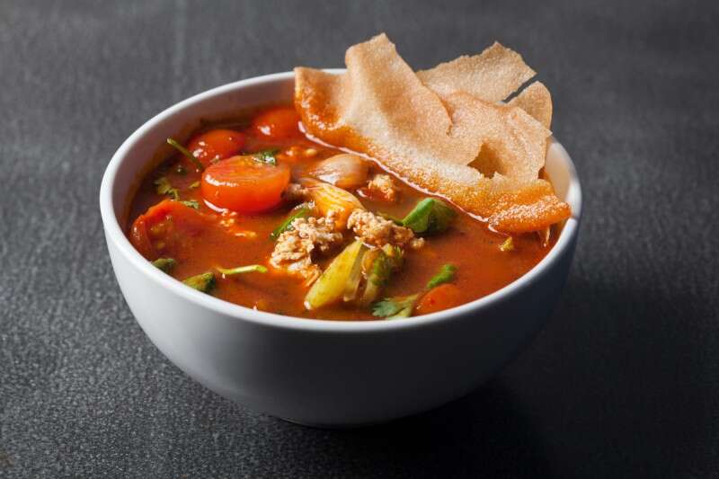 • מרק תאילנדי חריף – מרק עוף קצוץ חריף עם צ'ילי, ג'ינג'ר ותמרינדי (42 ₪).