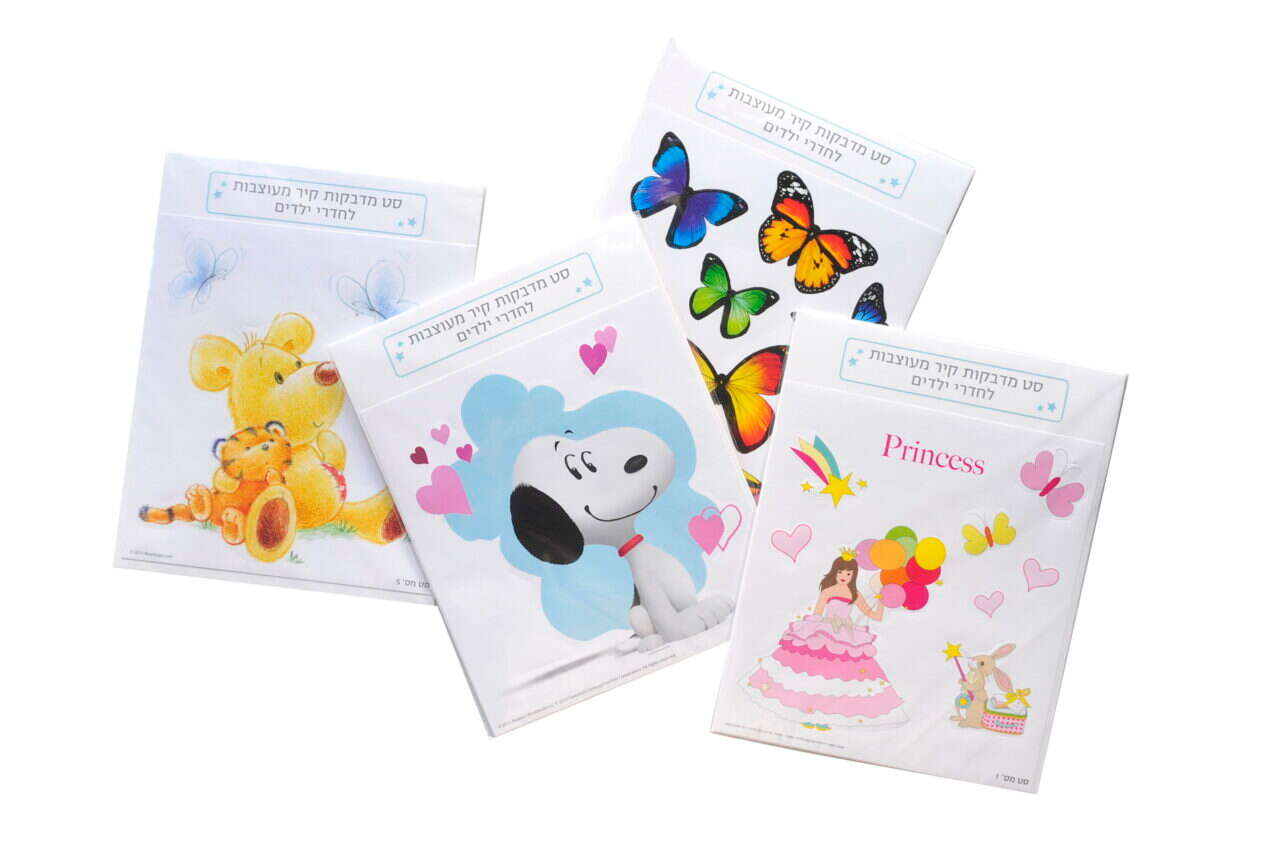 הסט מכיל שתי מדבקות, בהדפסים שונים, לבנים ולבנות: דובי, פרפרים, סנופי, כדורגל, נסיכות ועוד, כאשר כל ההכנסות יועברו כתרומה לעמותת 'מפעל להכשרת ילדי ישראל' – עמותה המעניקה מסגרת חינוכית משקמת ותומכת לילדים ובני נוער בסיכון.
