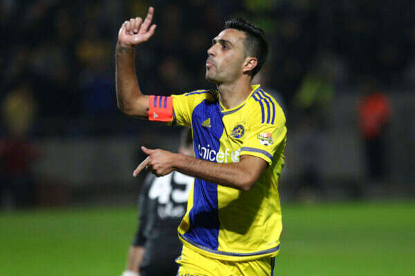 גבאי ואצילי מתחבקים לאחר הבקעת הפנדל // צילום: דני מרון