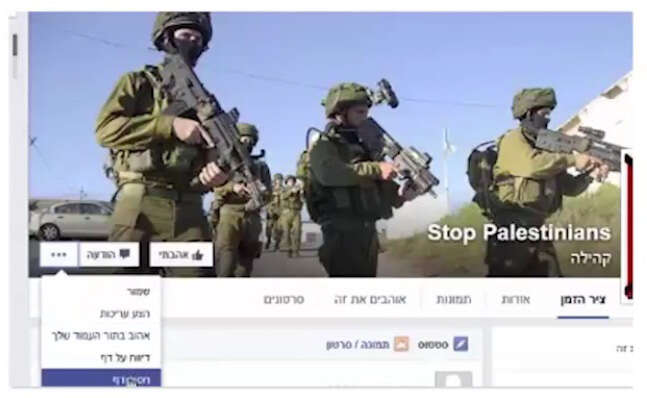 ארגון "שורת הדין" טוען בתחקיר שערך כי פייסבוק חוסמת הסתה נגד פלשתינים אך מתירה הסתה נגד ישראלים. התחקיר כלל ניסוי במסגרתו הוקמו שני עמודי פייסבוק פיקטיביים זהים בתוכנם, כשהאחד מסית כנגד פלשתינים והשני מסית כנגד יהודים וישראלים. בעקבות דיווחים (report) זהים שנעשו לפייסבוק כנגד שני העמודים, נסגר רק העמוד המסית כנגד הפלשתינים, בטענה שהוא מפר את הסטנדרטים הקהילתיים של פייסבוק. לעומתו העמוד שהסית כנגד ישראל נותר פתוח עד היום.