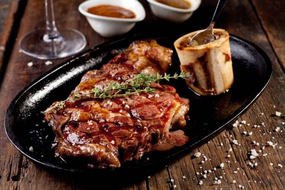 צלע עגל חלב עם מח עצם (צילום בועז לביא)