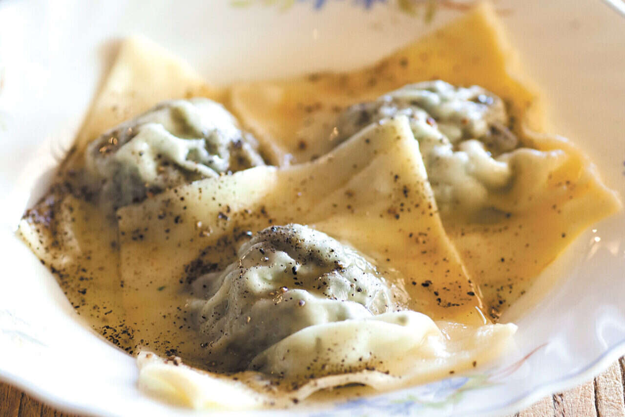 רביולי במילוי עלים בדבש וחמאה