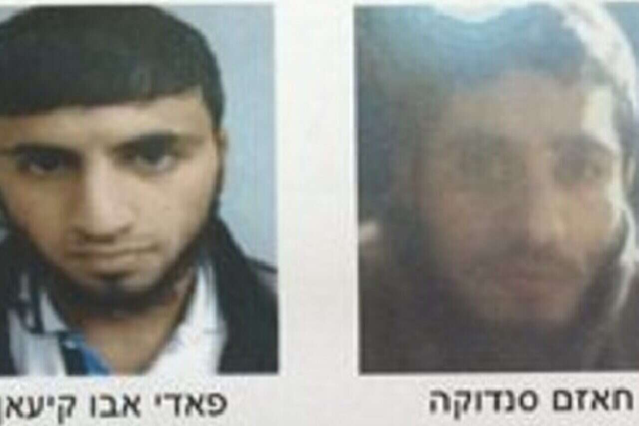 המחבלים חאזם סנדוקה (מימין) ופאדי אבו קיעאן // צילום: תקשורת שב"כ // המחבלים חאזם סנדוקה (מימין) ופאדי אבו קיעאן